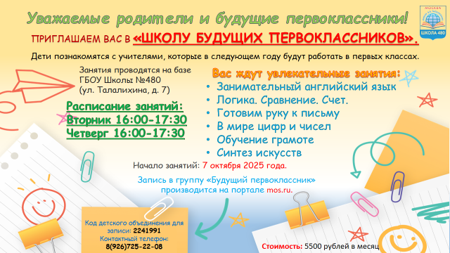 Уважаемые родители и будущие первоклассники! Приглашаем Вас в "Школу будущих первоклассников".