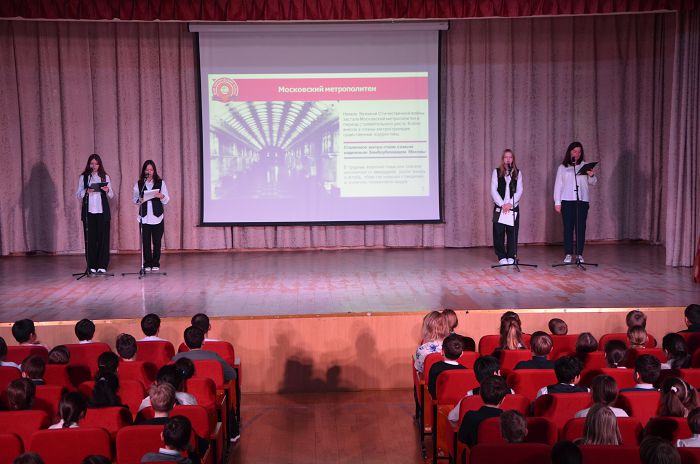 В рамках городского образовательного проекта «Мой героический район» представители военно‑патриотического клуба «ТАЛАЛИХИНЦЫ» и советник директора по воспитанию провели уроки мужества на тему «Военные рельсы Московского метро».